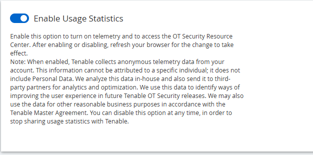 OT Security のアクティベーションが終わると、[バージョン情報] ビューで自分の Tenable カスタマー ID を確認できます。このカスタマー ID は、テクニカルサポートチームまたは Customer Success チームに連絡するときに必要です。