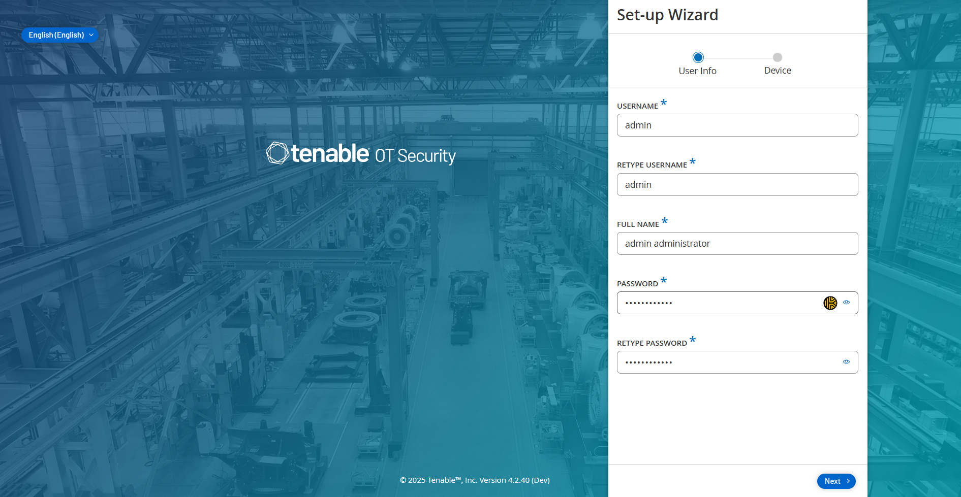 OT Security セットアップウィザードは、基本的なシステム設定を行うプロセスをガイドします。