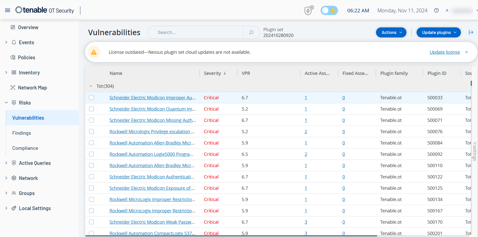 OT Security は、ネットワークの資産に影響を与えるさまざまなタイプの脅威を識別します。新しい脆弱性に関する情報が発見されてパブリックドメインで一般公開されると、Tenable リサーチスタッフは Tenable Nessus がその脆弱性を検出できるようにプログラムを作成します。