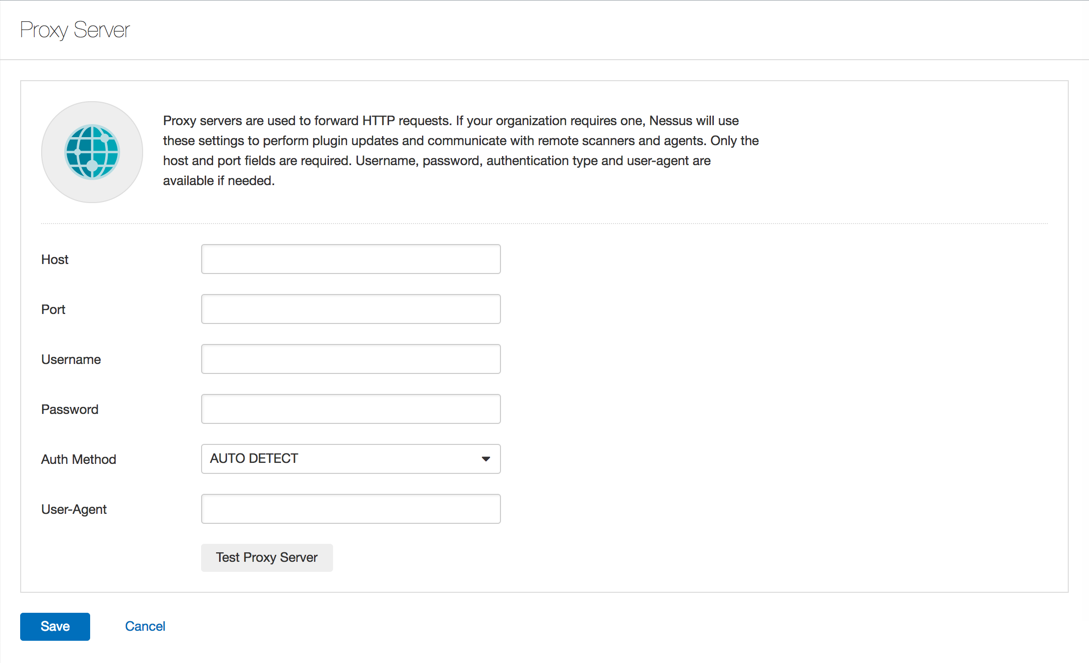 Tenable Nessus により、プロキシサーバーが保存されます。