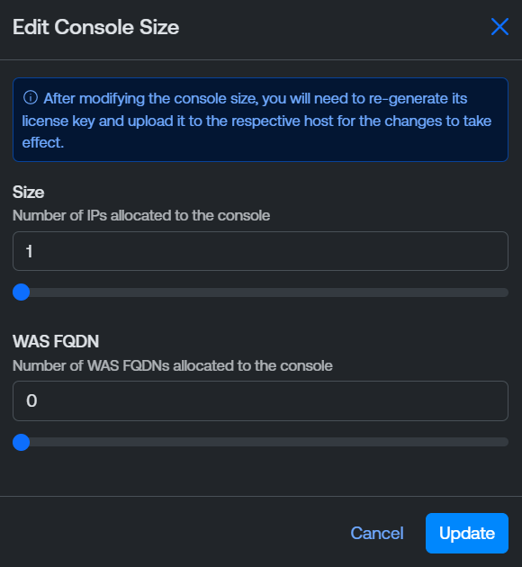 [WAS FQDN] テキストボックスに、コンソールに割り当てる WAS FQDN の数を入力します。