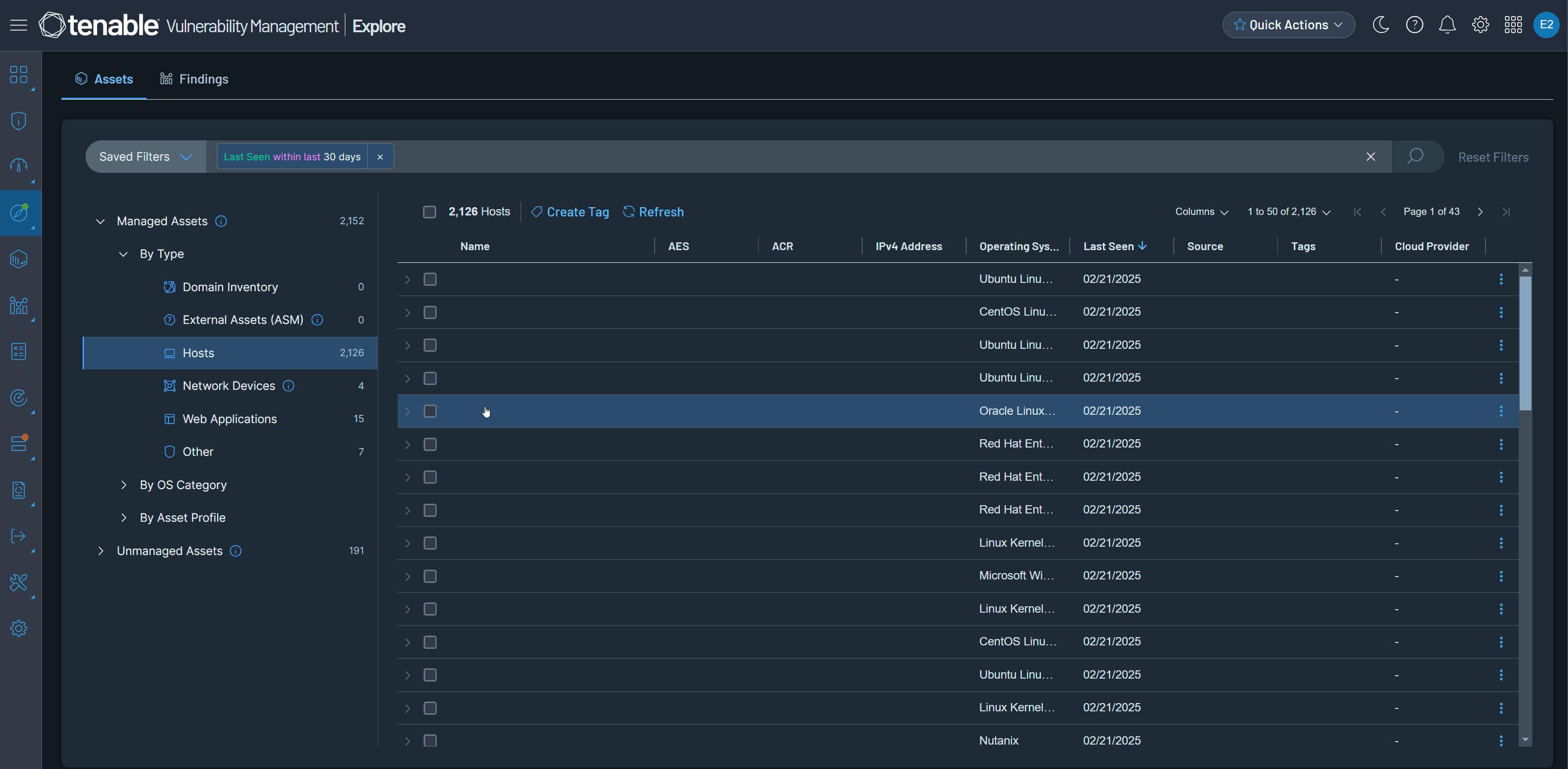 詳細は、Tenable Vulnerability Management ユーザーガイドのホスト資産と資産フィルターを参照してください。新しい列はデフォルトでは非表示になっています。表示するには、テーブルの使用の手順を実行してください。